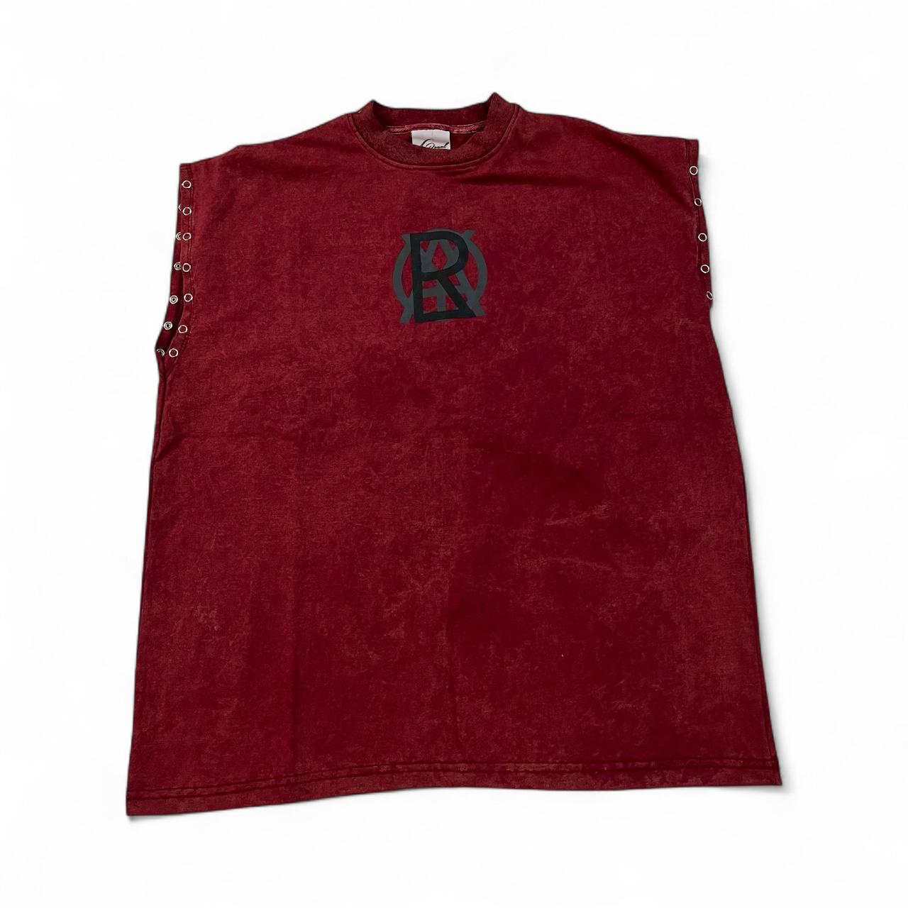 Made from soft, pre-shrunk cotton, this tee boasts a rich, stone-washed burgundy finish that gives it a unique, lived-in feel from the first wear. The distinctive mock-neck collar and sleeveless design offer a modern silhouette.